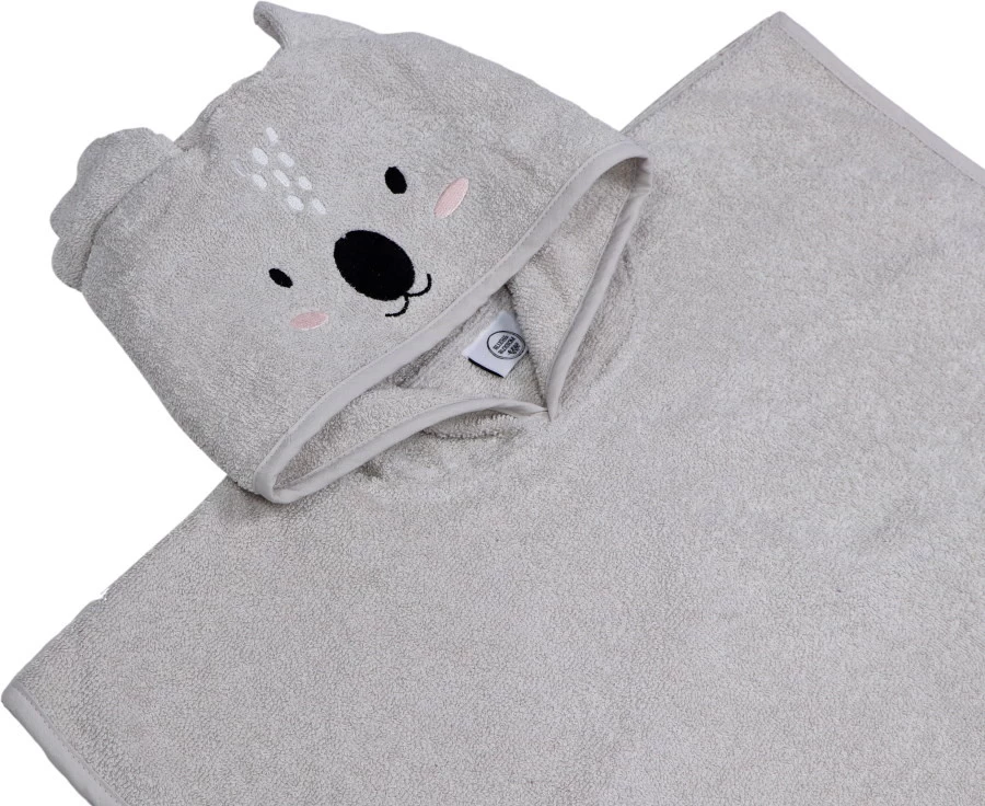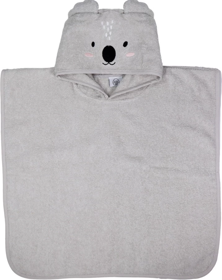 Met deze zachte baby poncho van Blush & Blossom blijft je kleine lekker warm na het badderen! Deze leuke poncho heeft een leuk koala gezichtje en oortjes, zodat als je kleine zijn/haar capuchon op doet hij/zij eruit ziet als een echte koala! Super cute.