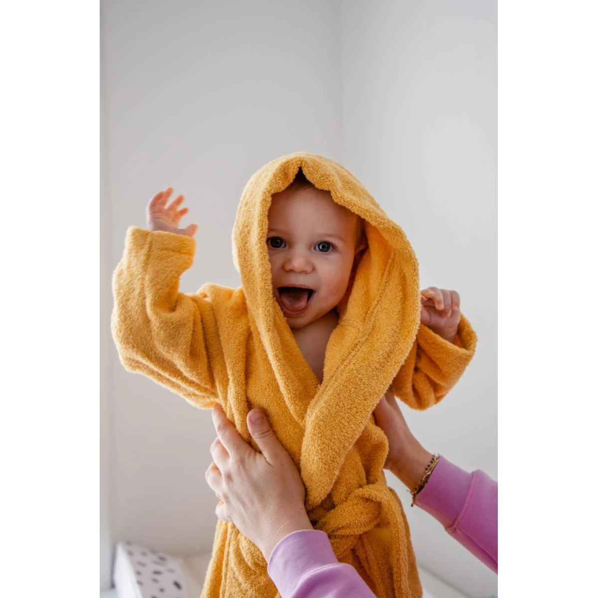 Dit badjasje is geschikt voor kindjes van 0 tot 1 jaar. Is de badjas vies geworden? Hij mag gewassen worden in de wasmachine op 40ºC. Daarnaast is de badjas geschikt voor in de droger en om te strijken.