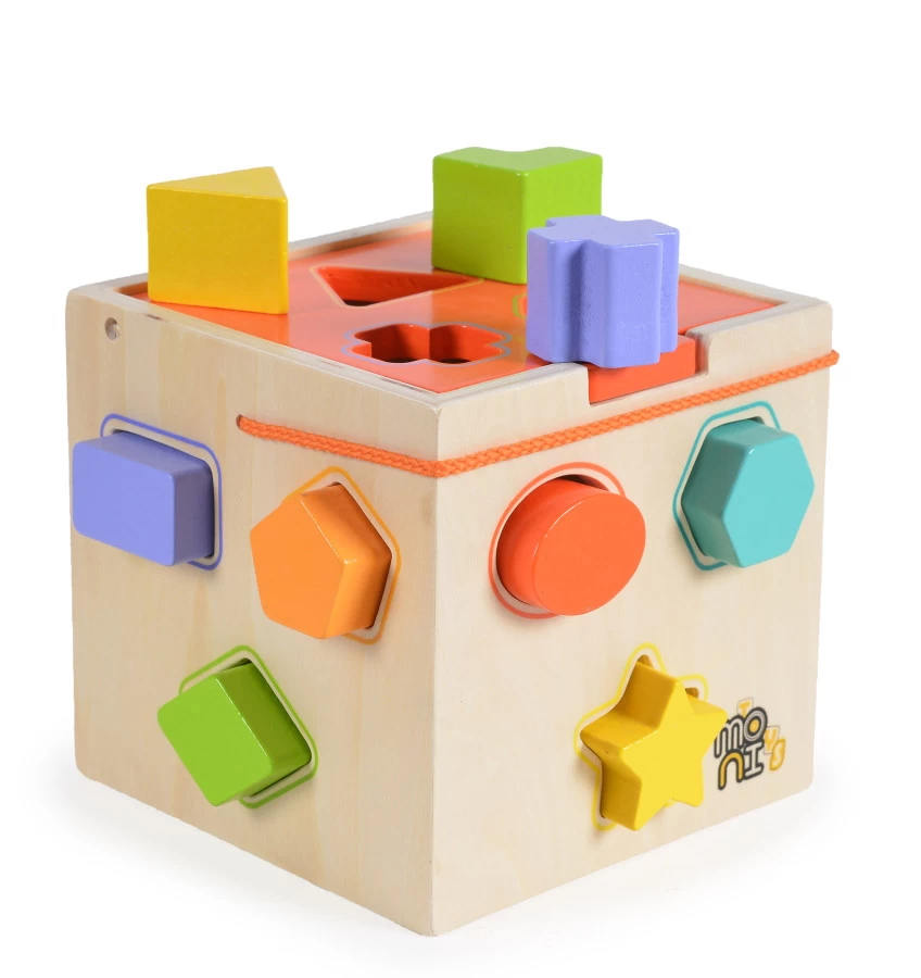 De vormenstoof is gemaakt van hout en bevat 12 figuurtjes in de vorm van sterren, vierkantjes en rondjes. Hij is 14,2 x 14,2 x 13,7 см groot en staat ook erg leuk als decoratie op de kinderkamer. De vormenstoof is te gebruiken voor kindjes vanaf 18 maanden.