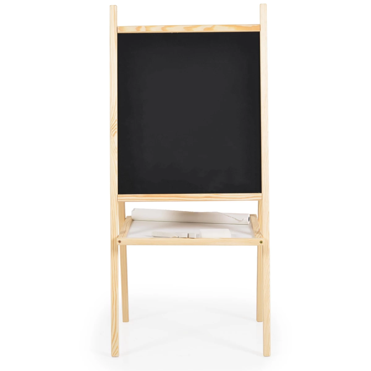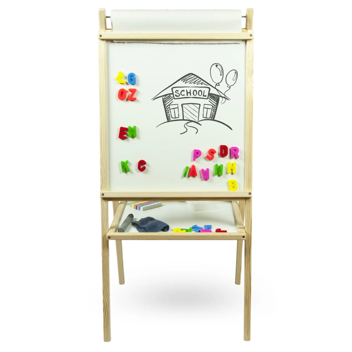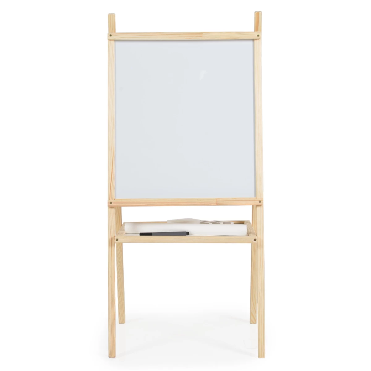 Het tekenbord wordt geleverd met verschillende accessoires zodat jouw kleine kunstenaar gelijk aan de slag kan, zoals een whiteboardstift, een paar krijtjes en een uitveegborstel. Daarnaast wordt er een rol papier meegeleverd die je aan de bovenkant kan bevestigen, zo kan je de mooiste creaties bewaren in plaats van steeds uitvegen! Op het plankje onder het tekenbord is ruimte om de accessoires op te bergen.