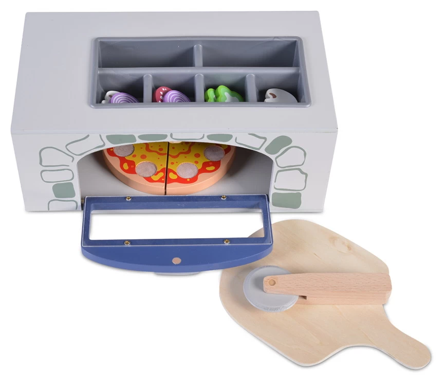 Je kleine zal zich een echte pizzabakker voelen met deze houten pizza oven van Cangaroo! Door de meegeleverde toppings kan je kindje zijn/haar favoriete pizza maken. De oven wordt geleverd met pizza (bestaande uit 4 delen) een schep en toppings zoals champignon, salami en ui.