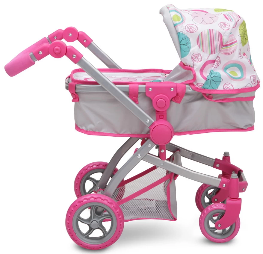 De Pink Rose poppen kinderwagen heeft een reiswiegje die is om te bouwen tot wandelwageninzet. Het zitje is van het frame te halen dat tevens inklapbaar is, zodat je hem makkelijk op kan bergen. Hij is geschikt voor kindjes vanaf 3 jaar.