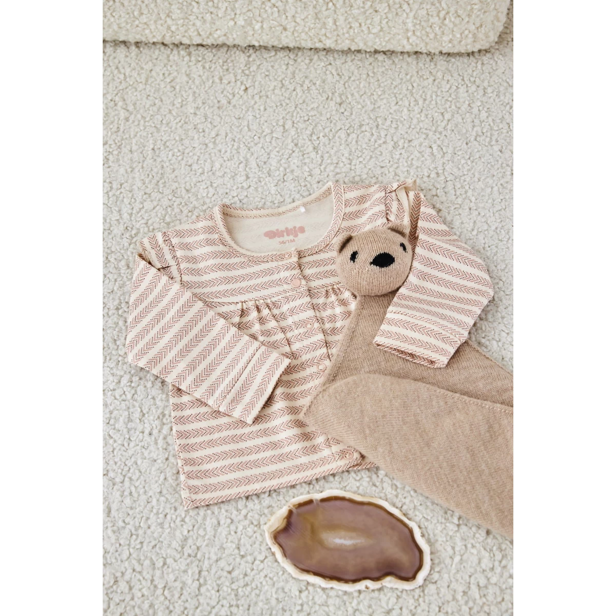 Wauw! Deze super leuke 7-delige set van Dirkje is lekker warm voor de koudere maanden én ziet er cute uit. Het setje bestaat uit een truitje, twee broekjes, een vestje, een jurkje, een muts en één paar slofjes. De set is bedrukt met een leuke gestreepte print en alle items zijn super leuk te combineren met elkaar! Deze mooie 7-delige set heeft een neutraal kleurtje dat overal bij past. De kleren zijn van bio katoen gemaakt, dus ook duurzaam!