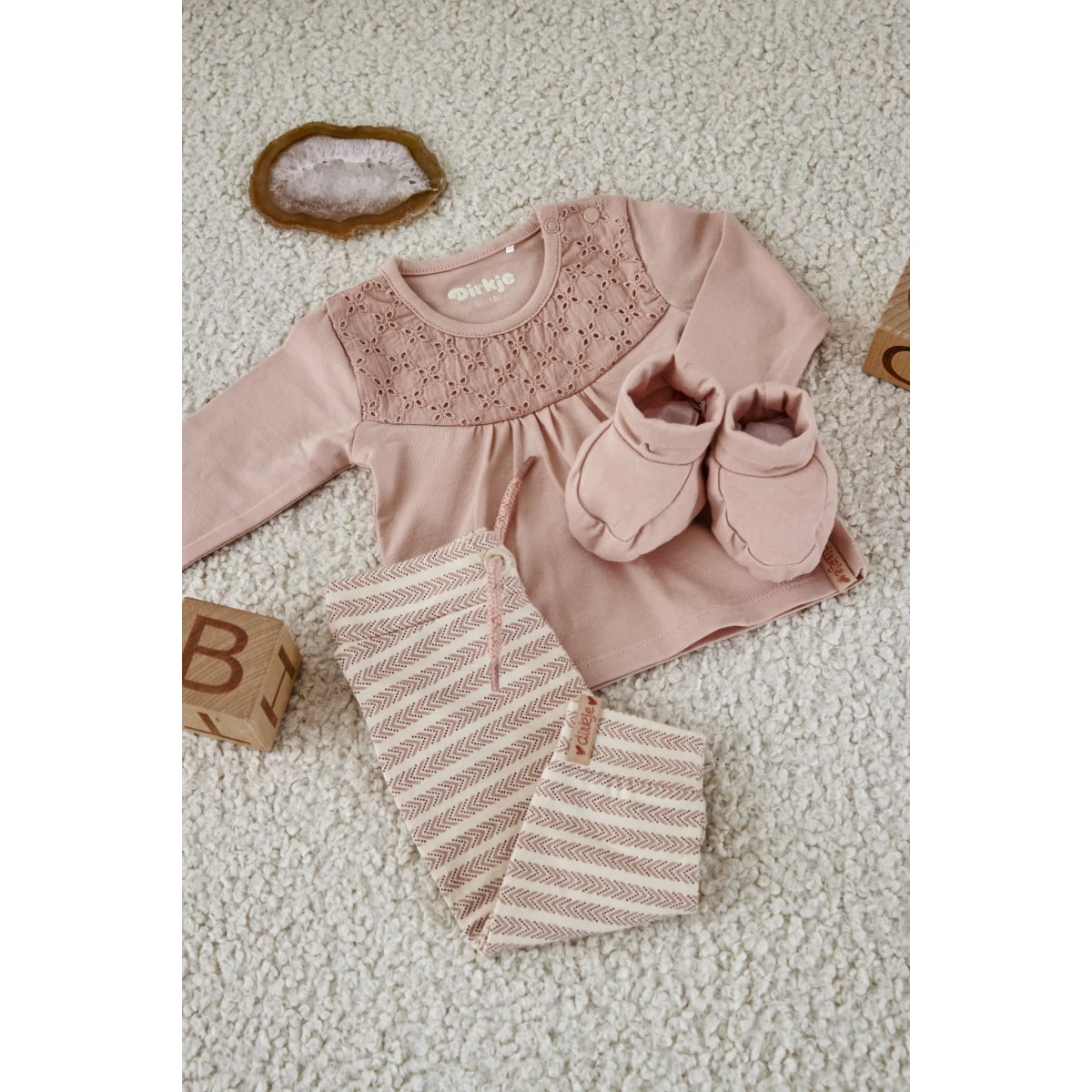 Wauw! Deze super leuke 7-delige set van Dirkje is lekker warm voor de koudere maanden én ziet er cute uit. Het setje bestaat uit een truitje, twee broekjes, een vestje, een jurkje, een muts en één paar slofjes. De set is bedrukt met een leuke gestreepte print en alle items zijn super leuk te combineren met elkaar! Deze mooie 7-delige set heeft een neutraal kleurtje dat overal bij past. De kleren zijn van bio katoen gemaakt, dus ook duurzaam!