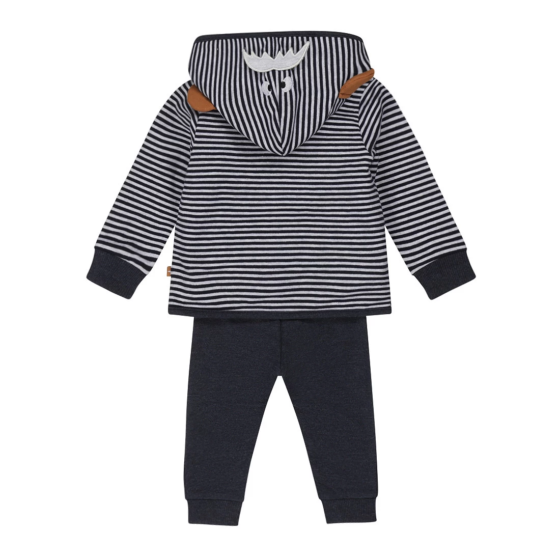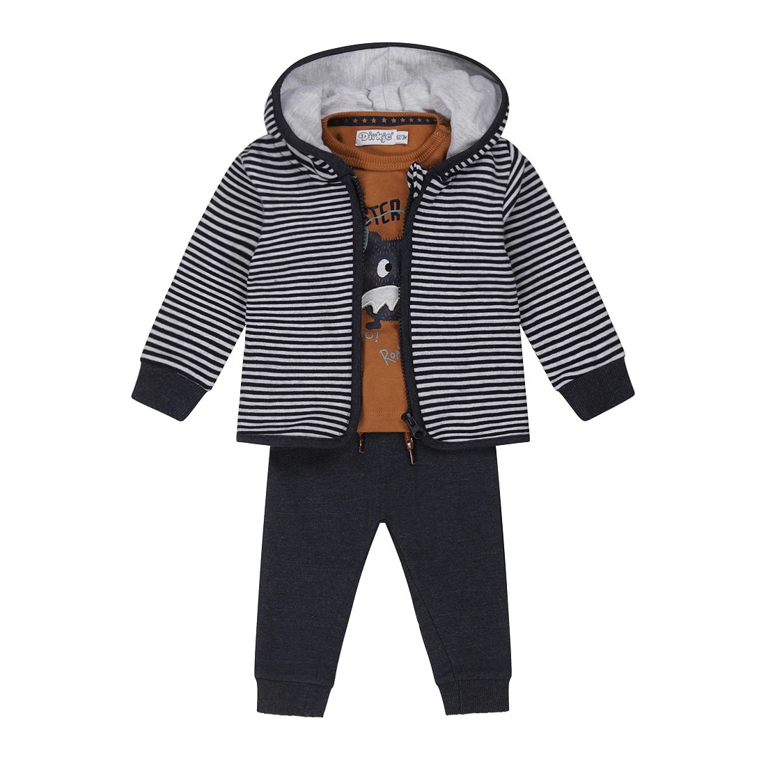 Wauw! Met deze leuke 3-delige set van Dirkje is je kleine warm én schattig aangekleed! Door het lange broekje en het vestje heeft jouw kindje het niet snel koud, wanneer je kleine het warm krijgt kan het vestje uit. Het truitje heeft lange mouwtjes en op de trui staat een monstertje met een snor.