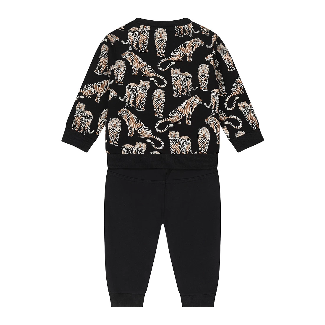 Met deze schattige 2-delige set van Dirkje is je kleine warm én leuk aangekleed! Door het lange broekje en de trui met lange mouwen heeft jouw kindje het niet snel koud! Het truitje heeft een leuke print met tijgers en de tekst die zegt: “Good vibes”.