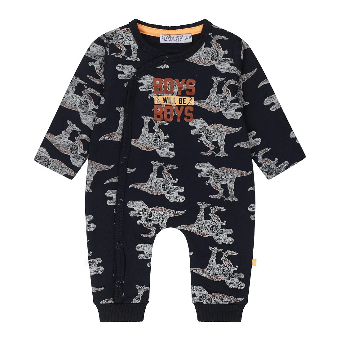 Met dit leuke boxpakje van Dirkje ziet je kleine er super stoer uit! Het boxpakje heeft een coole dino print en lange mouwen, hierdoor is je kleine lekker warm gekleed in het koude weer!