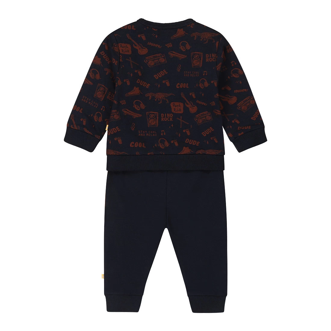Met deze stoere 2-delige set van Dirkje is je kleine warm én leuk aangekleed! Door het lange broekje en de trui met lange mouwen heeft jouw kindje het niet snel koud! Het broekje heeft een stoere dinoprint en op de trui staat de tekst: “Dino rock dude”.