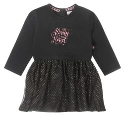 Met dit schattige jurkje uit de herfst/winter ’23 collectie van Dirkje wordt elke dag een fijne dag! Het jurkje met lange mouwen heeft een zwierig rokje met een tule laagje en zelfs gouden stipjes.