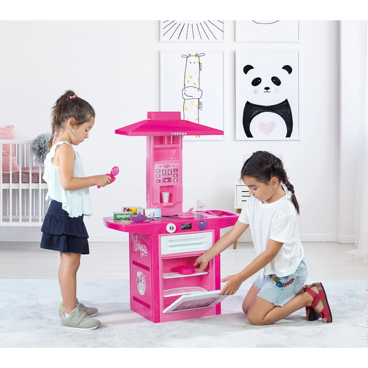 Het keukentje is voorzien van een kookstel, wasbakje met kraan, afzuigkap en een oven waarvan de deur open en dicht kan! Ook heeft hij wat opbergruimte voor verschillende spulletjes en een koffiemachine. De geluidseffecten maken het nét echt! Spelen met een eigen keuken draagt bij aan de ontwikkeling van de motorische vaardigheden, fantasie en het inlevingsvermogen van je kleine. Ook leerzaam dus! Hij is geschikt voor kindjes vanaf 3 jaar.