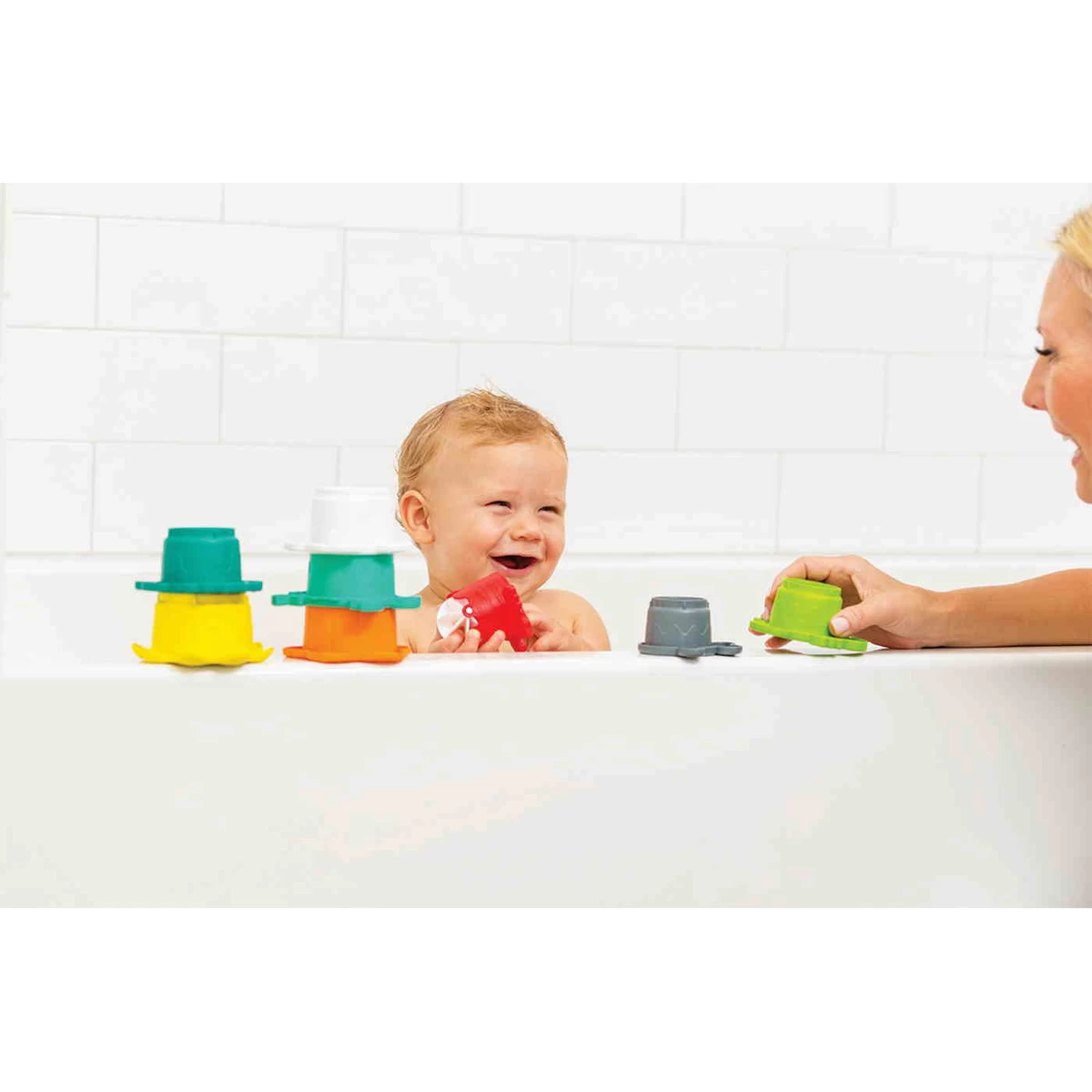 Je kindje zal zich zeker vermaken met deze leuke badspeeltjes van Infantino! Je kleine kan ringen in een netje gooien, de juiste figuurtjes in de walvis doen en verschillende formaten cups op elkaar stapelen.