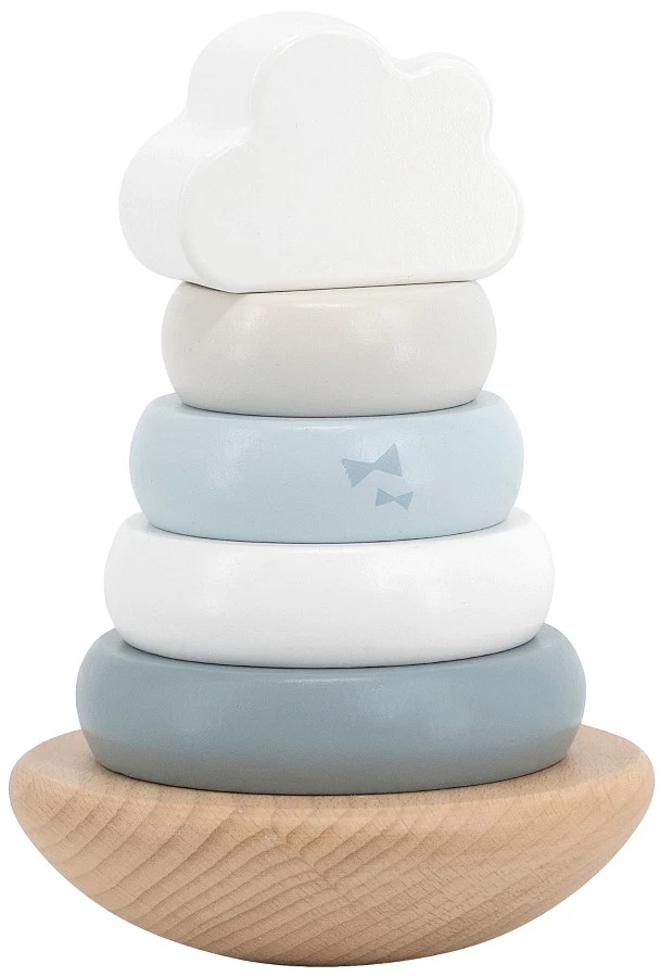 Wat zal jouw kleintje veel speelplezier beleven met deze houten tuimelringpiramide van Label Label! Deze stapelpiramide bestaat uit 6 verschillende onderdelen met zachte pastelkleurtjes. Het wolkje bovenop maken het af!