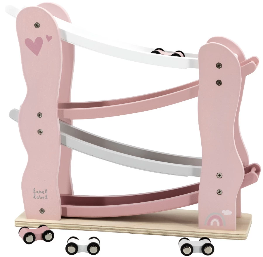 Je kleine zal urenlang speelplezier beleven met deze houten autobaan van Label Label! Zet de autootjes één voor één bovenin de autobaan en laat ze naar beneden racen! Er worden 4 autootjes meegeleverd, zo kan je kleine goed in de gaten houden welke als eerst beneden is.