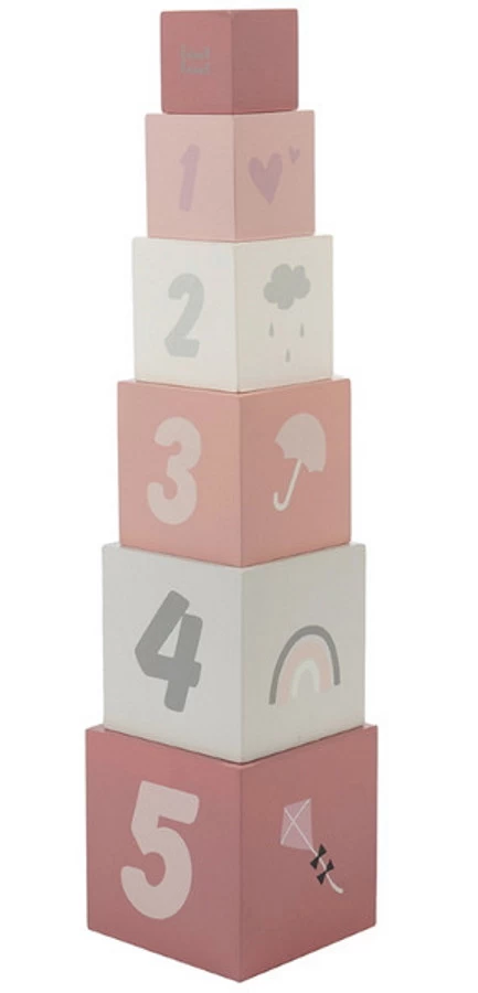 Wat een bouwplezier zal jouw kleintje hebben met de Label Label stapelblokken! De blokken zijn gemaakt van stevig FSC hout en hebben zijn wit met roze gekleurd.