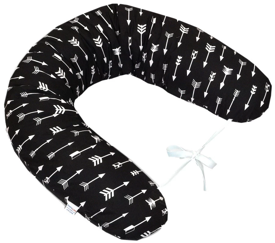 Het voedingskussen is voorzien van een afritsbare hoes die in de wasmachine op 40° gewassen kan worden. Om er voor te zorgen dat het voedingskussen rond blijft staan als je kleintje er op zit of tijdens het voeden, zitten er 2 touwtjes aan het einde van het voedingskussen welke aan elkaar geknoopt kunnen worden. De lengte van het voedingskussen is 155 cm.