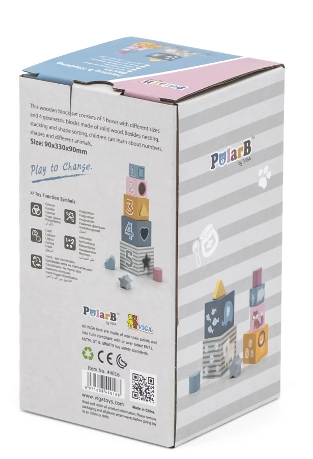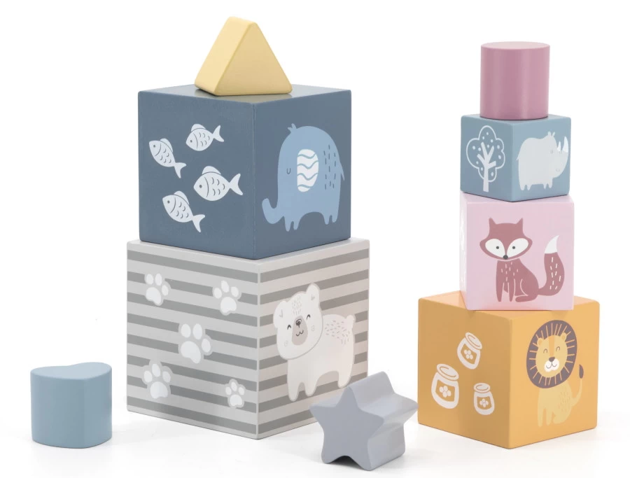 Kan jouw kleine deze kubussen opstapelen zonder de toren te laten vallen? Met de PolarB 2-in-1 houten stapelblokken en vormenstoof leert je kleintje spelenderwijs. De 5 kubussen hebben allemaal andere kleuren, figuurtjes en cijfers wat erg leuk is!