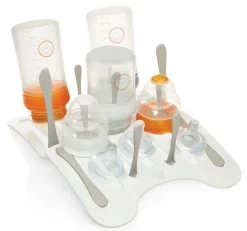 De 12 droogarmpjes kun je afzonderlijk omhoog en omlaag zetten, zodat je zelf bepaalt hoeveel ruimte het droogrekje gebruikt. In totaal kunnen er maximaal 10 flessen of accessoires op het rekje gedroogd worden.