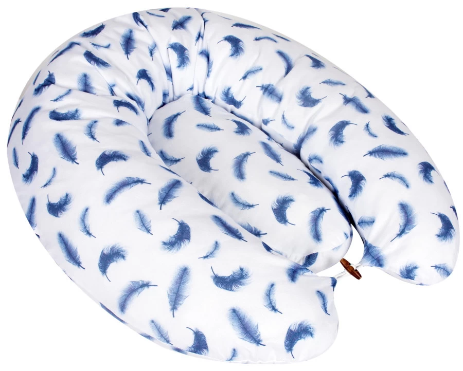 Het voedingskussen is voorzien van een hoes die gemaakt is van 100% katoen. Om ervoor te zorgen dat het voedingskussen rond blijft staan als je kleine er op zit of tijdens het voeden zit er een knoop aan het einde van het voedingskussen. De lengte van dit voedingskussen is 195 cm. De diameter van dit voedingskussen is 35 cm.