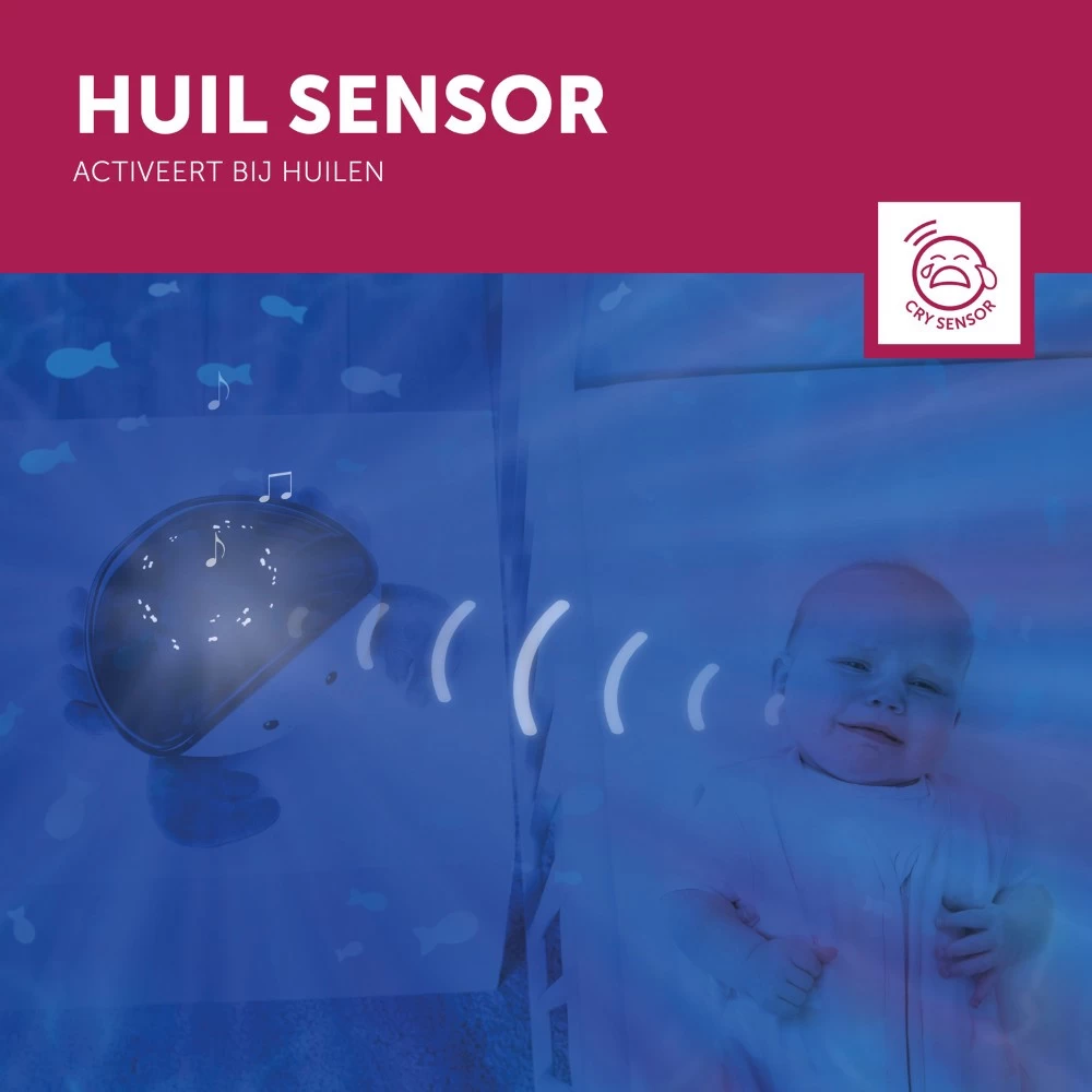 Met Cody de Krab de oceaan projector verander je jouw kleintje zijn of haar kamer in een magische onderwaterwereld. Zwemmende vissen en bewegende golven die geprojecteerd worden in de kamer zorgen, samen met de oceaan geluiden, voor een kalmerende sfeer in de kamer zodat je kleintje heerlijk in slaap kan vallen.