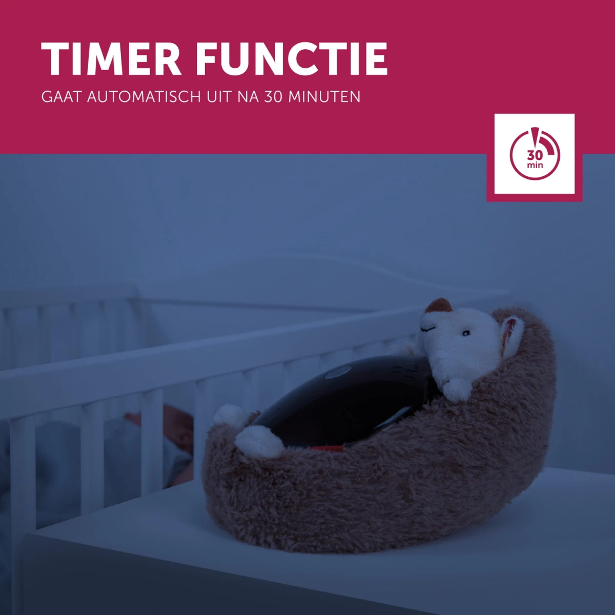 De pluche Egel is met de hand wasbaar, nadat de projectormodule verwijderd is. De projector kan al vanaf de geboorte van je kindje gebruikt worden.